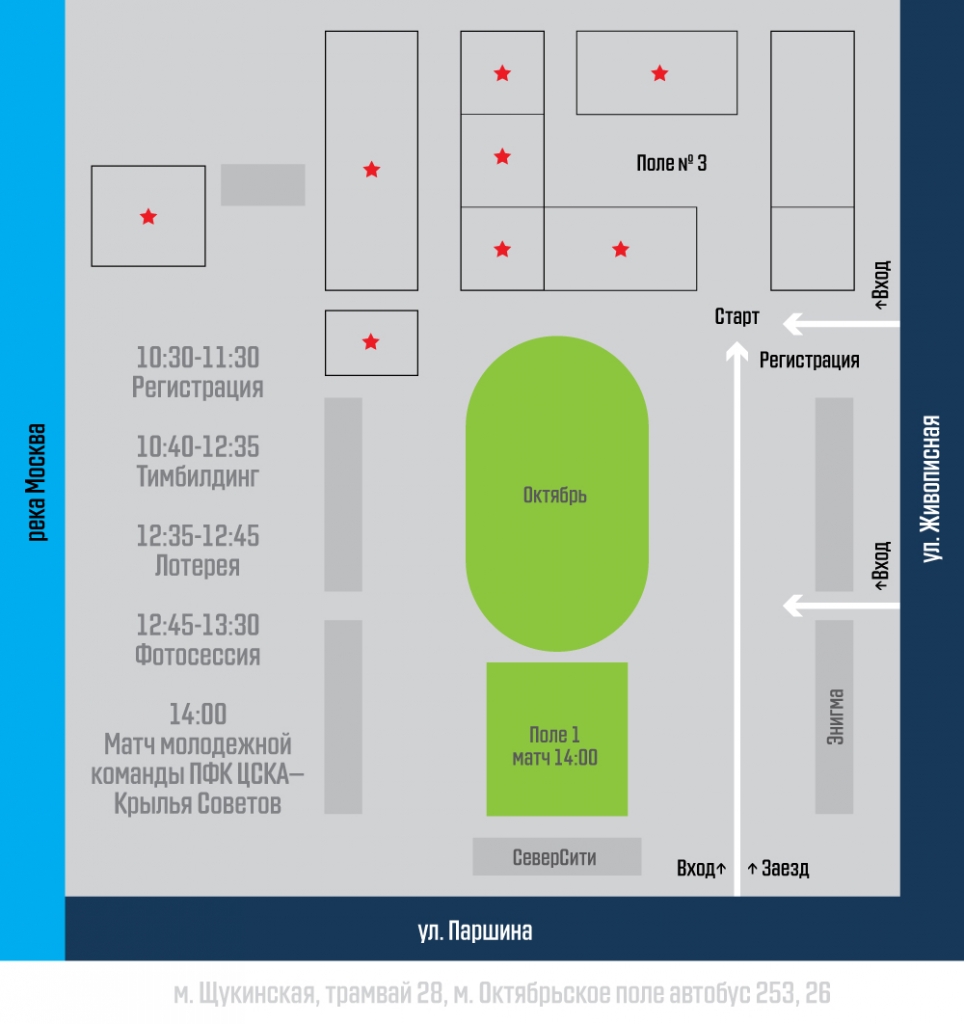 Место встречи — спорткомплекс «Октябрь» (ул. Живописная, 21). Схема входа на территорию и пункта регистрации на мероприятии на схеме.