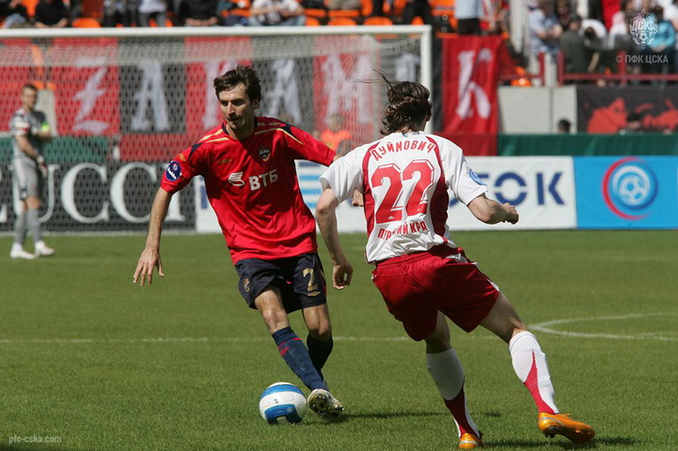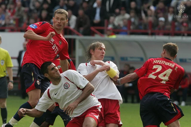 С первых минут на поле вышел Алексей Березуцкий, ключевая фигура оборонительных построений ПФК ЦСКА в то время, хотя он только восстановился после травмы.