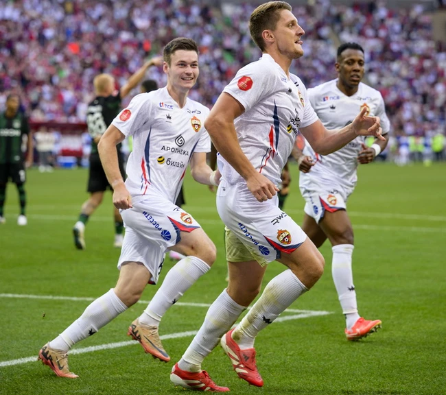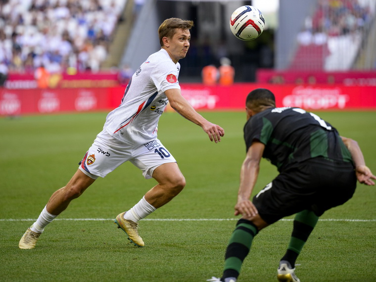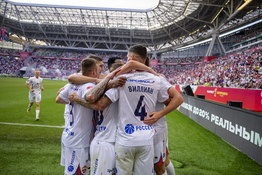 В прошлом сезоне армейцы были особенно результативны на стандартных положениях, и первый официальный гол в этом сезоне был забит с углового. После выигранного Виллианом Рошей единоборства счет открыл Игорь Дивеев. 0:1 на табло — и игра перешла под контроль армейцев.