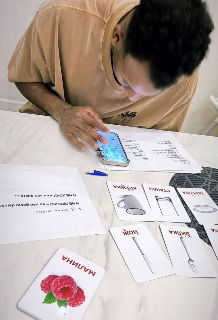 Я занимаюсь с репетитором, пытаюсь повторить некоторые слова и фразы. Если слышу новое, абсолютно непонятное и сложное слово, то это меня только подстегивает. Я стараюсь еще глубже погрузиться в изучение русского, чтобы взять определенный рубеж.